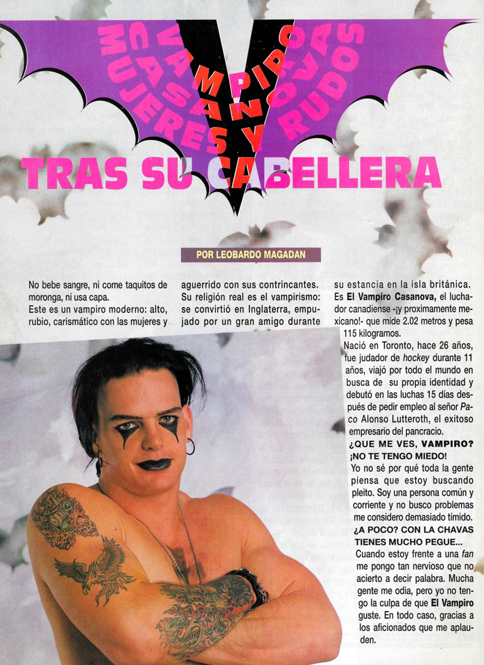 He is the modern vampire: tall, dark, charismatic with women, and brave against his opponents. His real religion is vampirism: he became one in England, pushed into it by a good friend during his stay in the British island. It is Vampiro Casanova, the Canadian wrestler – soon to be Mexican – at 6’6″ and weighing in at 253 lbs.