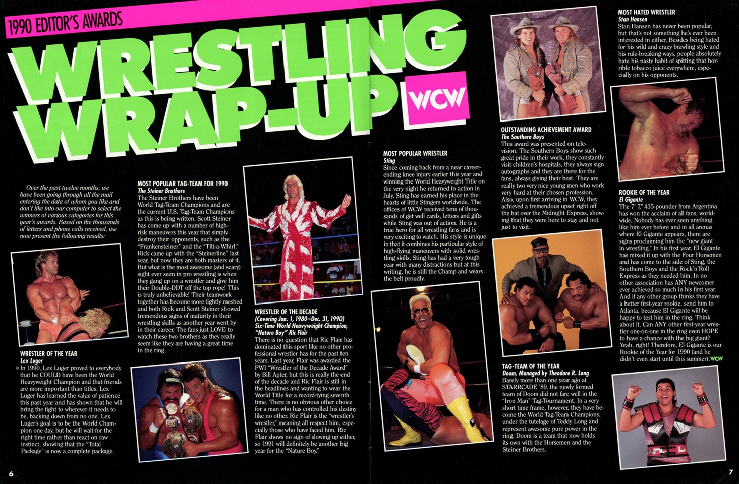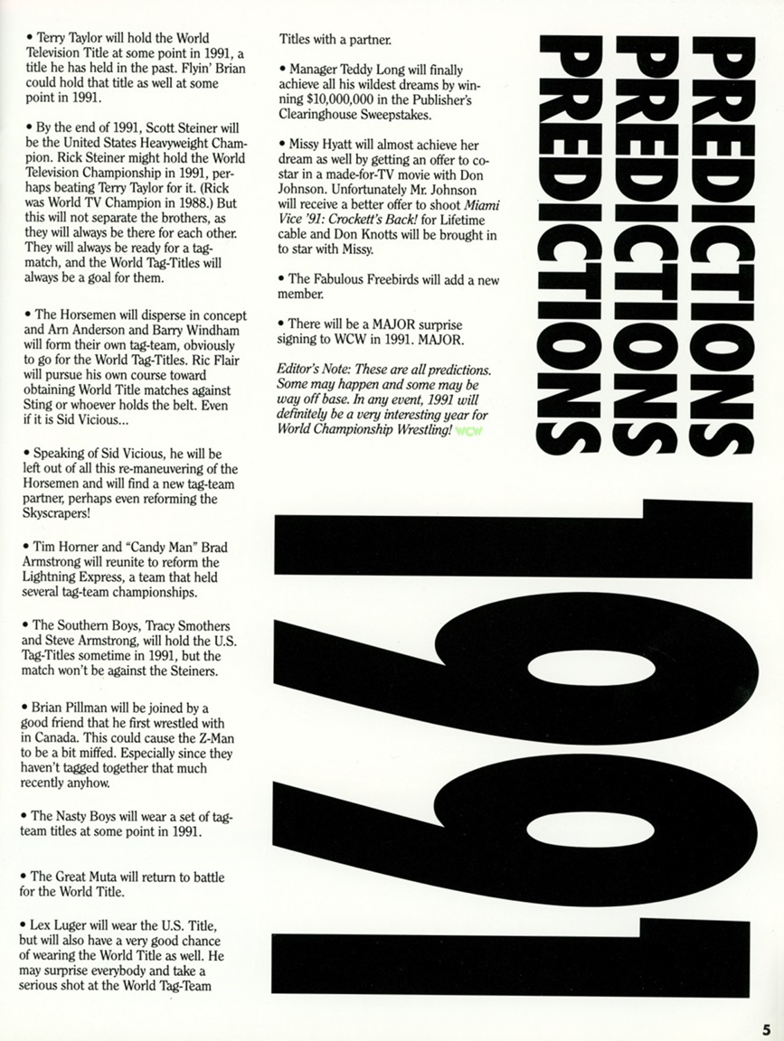 Also, be sure to pay attention to who the magazine deemed to be Rookie of the Year. For comparison sakes, WCW Magazine would late name The Shockmaster their ROTY in 1993.