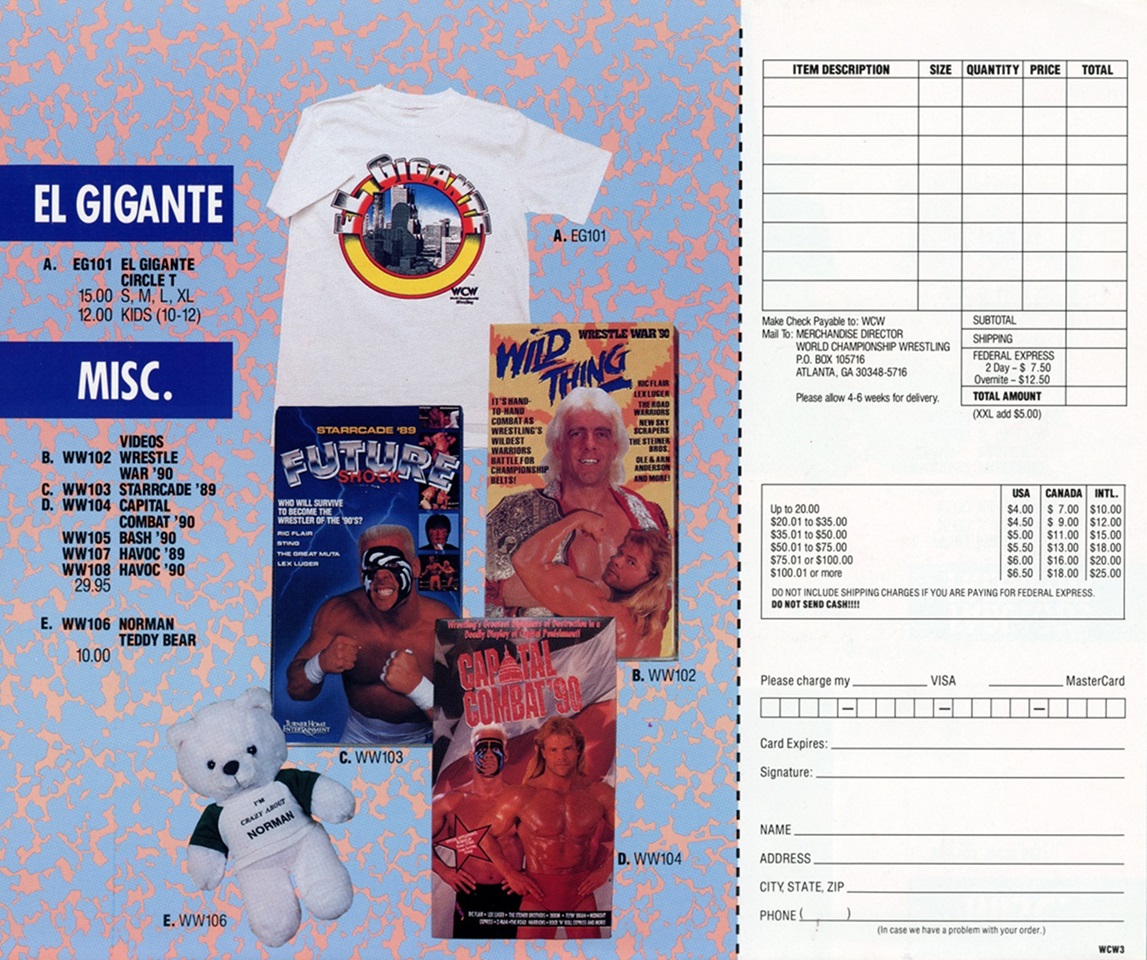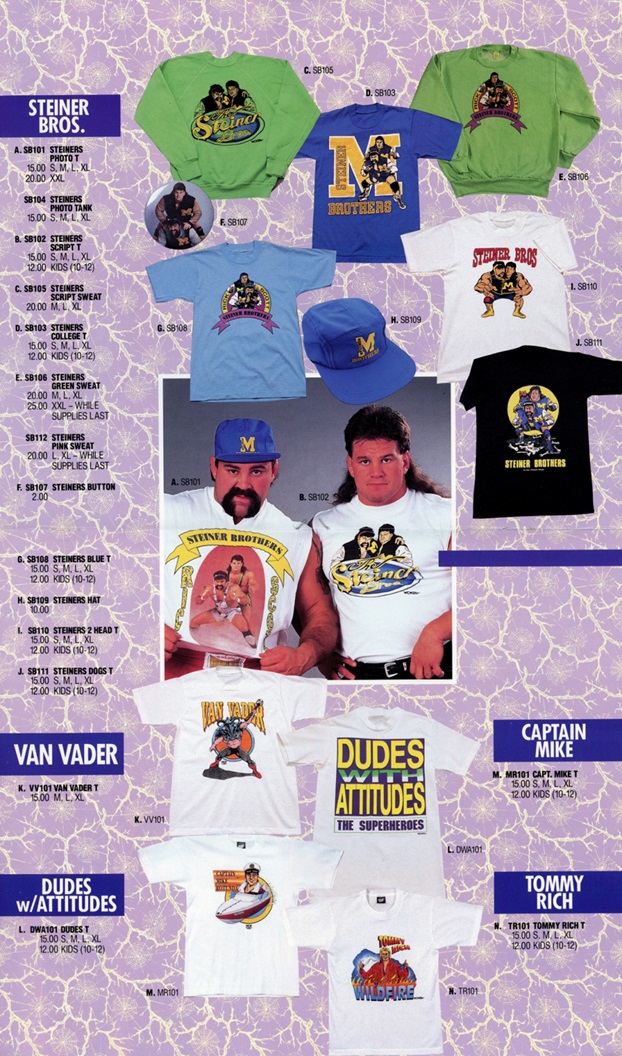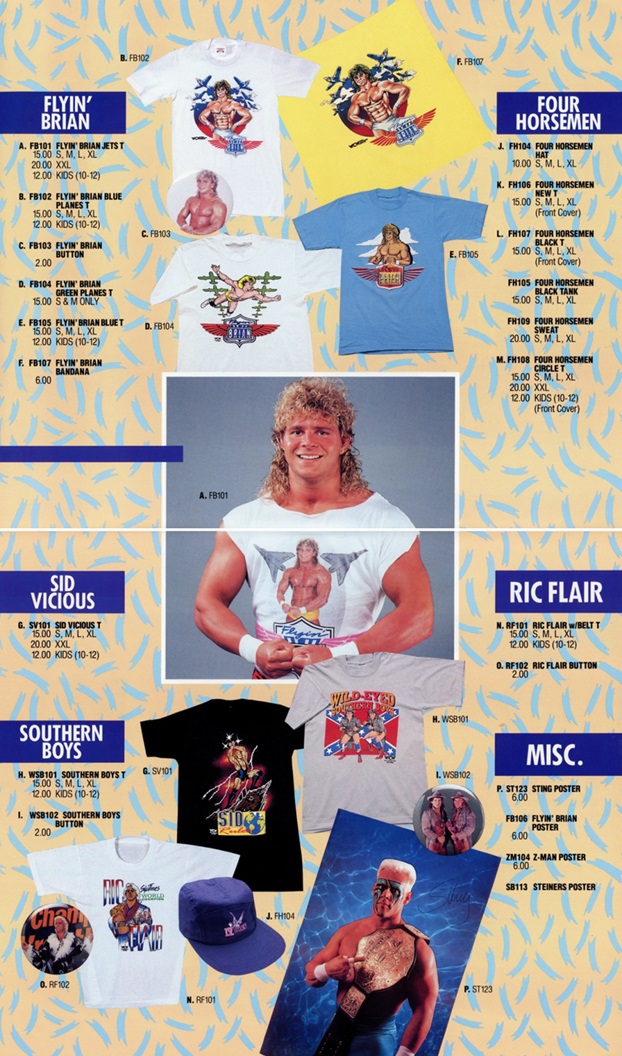 Despite that, I’m glad to have finally been able to get a chance to look through these. My personal highlight is the WCW merchandise catalog featuring numerous items I’d KILL to be able to purchase today in 2015 and, of-course, the Tracy Smothers and Steve Armstrong two-page centerfold. The Wild-Eyed Southern Boys, named after a .38 Special album… seems appropriate for the promotion at the time.