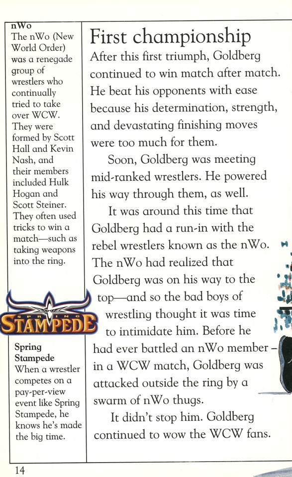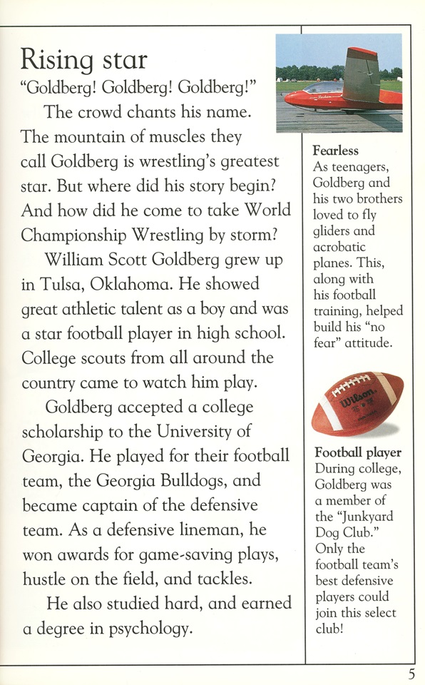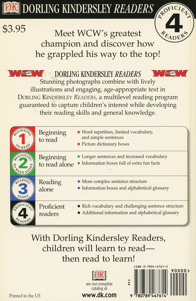 With the recent influx of Bill Goldberg back into the collective stream of modern WWE fandom, this marks the perfect time to learn some history about the WCW powerhouse. I have to warn you though, this DK Reader is marked at Level 4 and is specifically for people out there who are “proficient readers”. If you have trouble getting through this one, just sound the words out slowly to yourself and make sure to check the glossary at the end if you run into a word you haven’t learned yet.