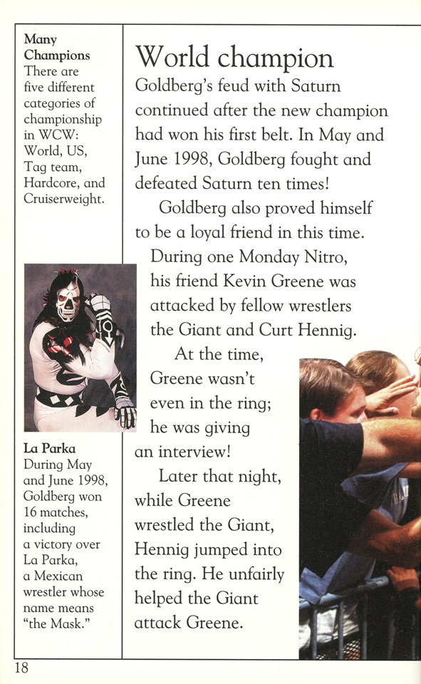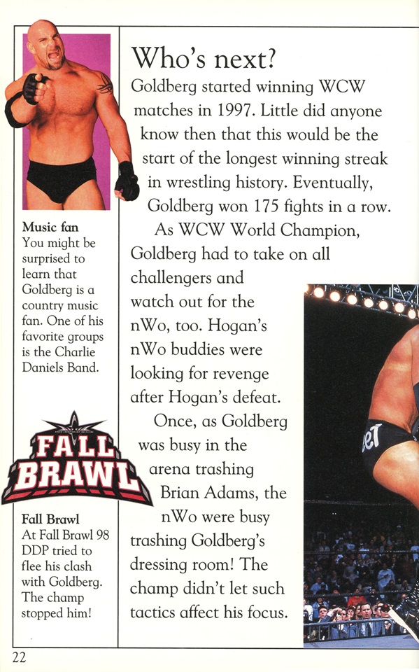 I remember reading this at a friend’s house when I was about 10 years old. Goldberg had came into WWE, and this book was great way to learn about his WCW career.